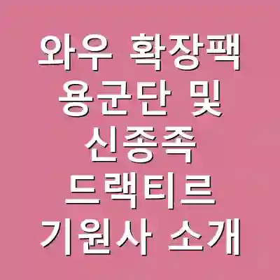 와우 확장팩 용군단은 신종족 드랙티르와 새로운 직업 기원사를 도입합니다. 드랙티르는 인간과 용의 형태로 변신하며, 기원사는 원거리 딜러와 힐러 역할을 수행합니다. 이 확장팩은 플레이어들에게 다양한 전투 경험과 스토리를 제공합니다.