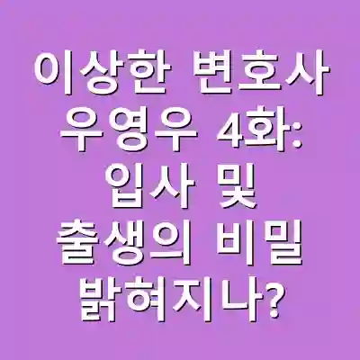 이상한 변호사 우영우 4화는 법정 사건과 우영우의 과거를 조명하며 많은 시청자들에게 사랑받고 있습니다. 특히, 입사 배경과 출생의 비밀에 대한 암시가 주요 요소로 작용합니다. ENA 채널을 통해 본방사수를 하며 이야기를 함께 즐길 수 있는 기회를 놓치지 마세요.